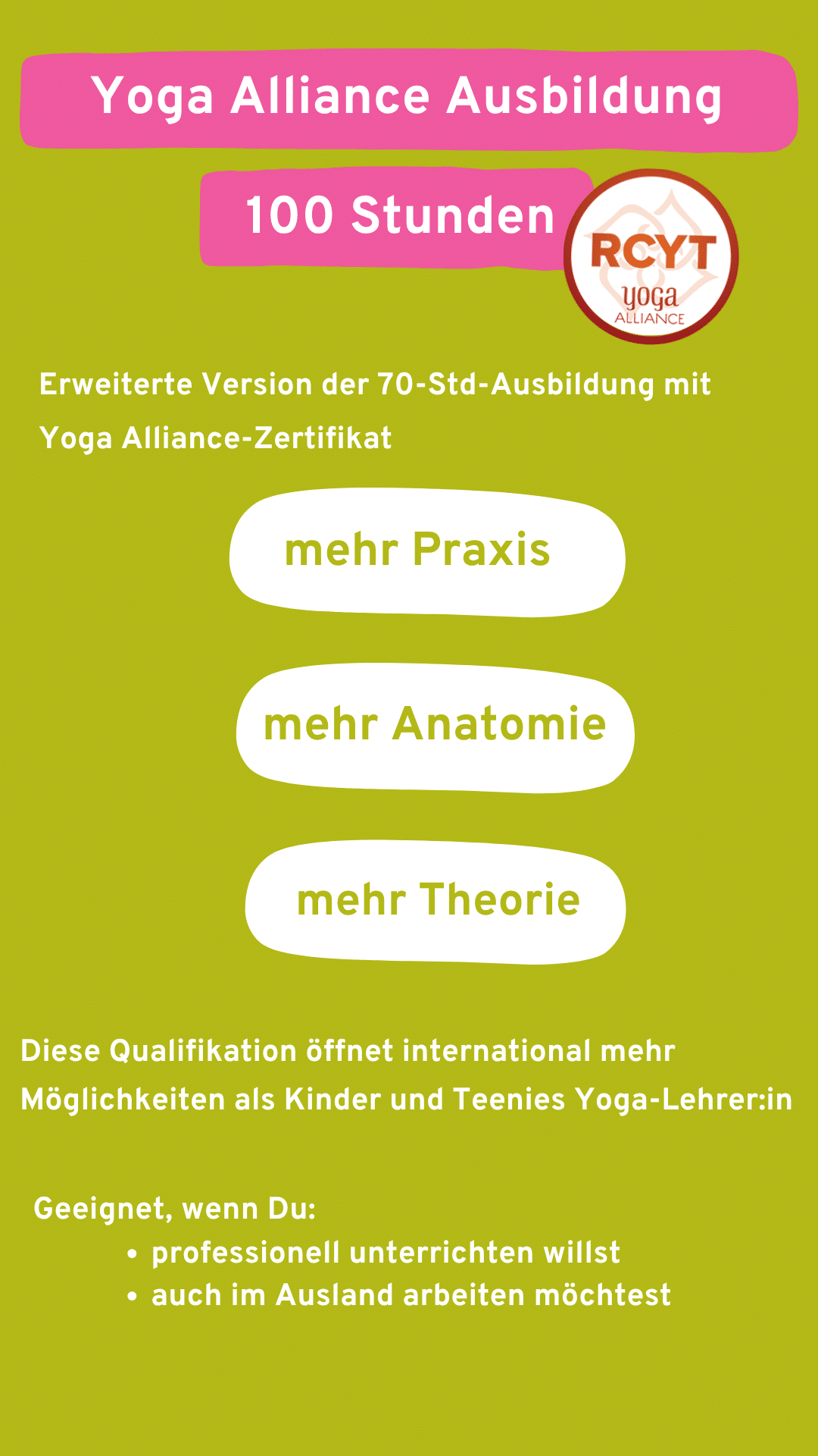 Yogalehrer:innen, die ihre Fähigkeiten erweitern möchten.